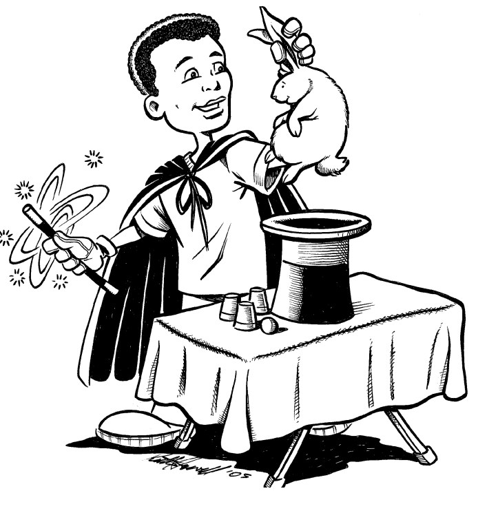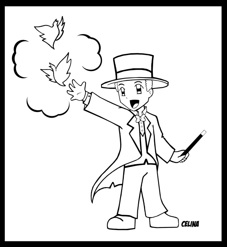 This character began as an idea for a Children’s Book series that I planned to write. Admittedly, it owes some inspiration to the Harry Potter series, which was at the height of its popularity at the time (I think, at this point, it was on book #4). I wanted to write my own magic character, and came up with this. The twist would be that I would leave it ambiguous as to whether or not this character actually has real magic powers, of if he’s just a skilled illusionist. Thus, the stories would never be told be told from D.C.’s point of view, but rather from those of the other students at his school.