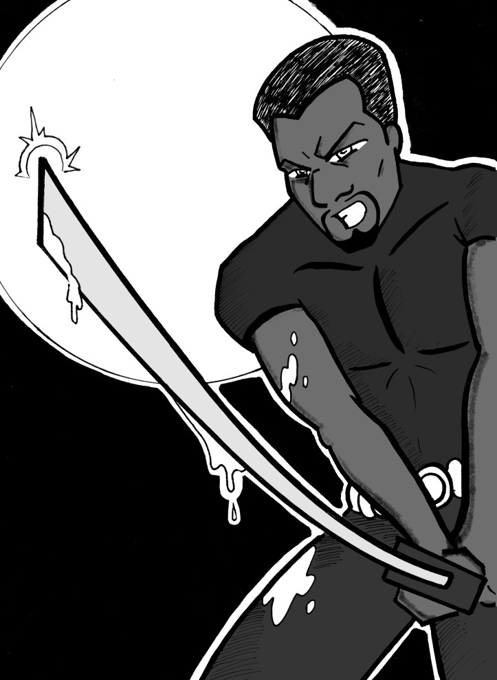 My basic idea is that I’d take Blade out of his somewhat limited role as a “vampire slayer”, and expand his goal towards fighting other supernatural threats (werewolves, zombies, monsters) and even super villains, in addition to fighting and killing vampires. He’d be a bit more similar to Wolverine rather than Buffy.